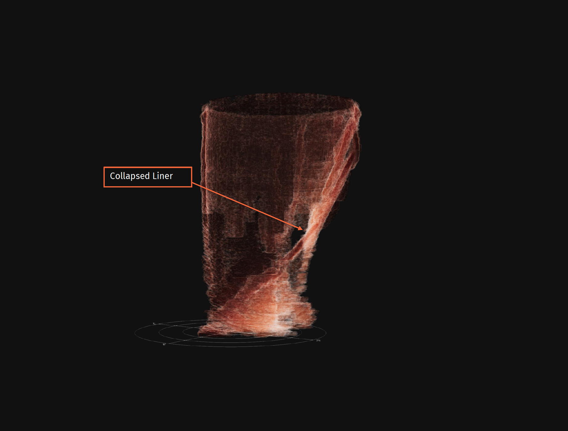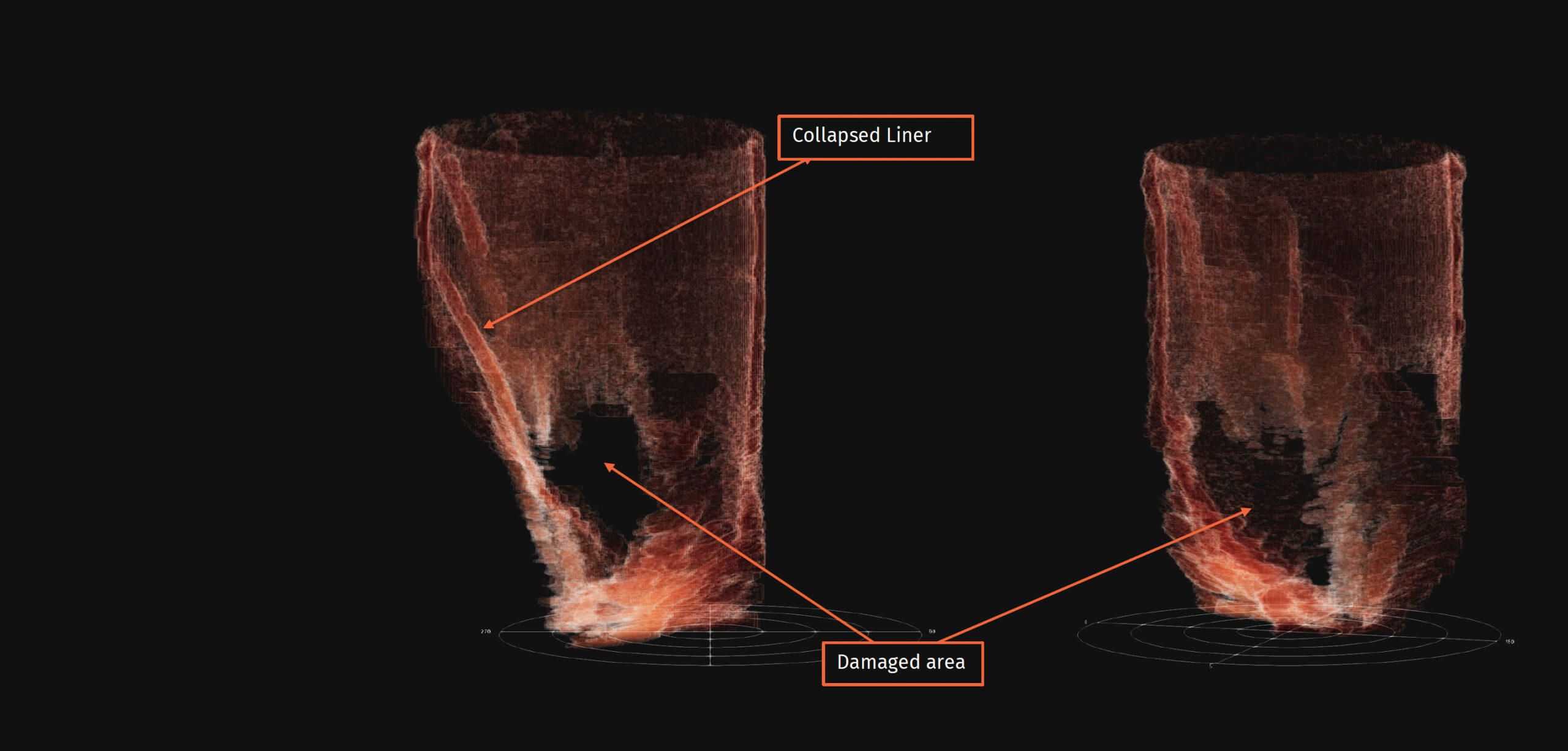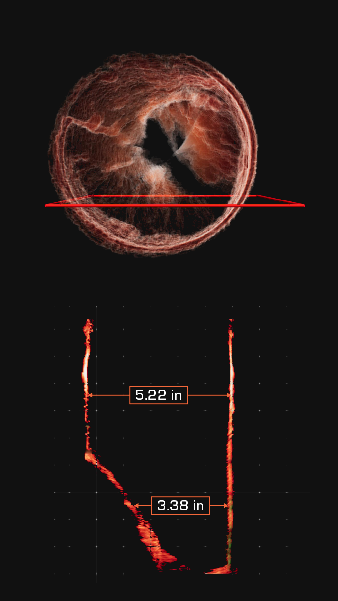The operator asked DarkVision to scan the HUD with HADES-F. Despite the challenging wellbore conditions, DarkVision successfully captured a comprehensive 0.25mm resolution 3D scan of the obstruction and surrounding casing.